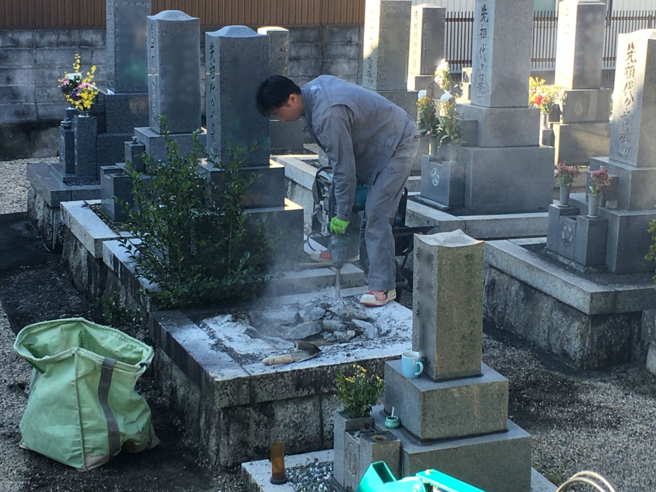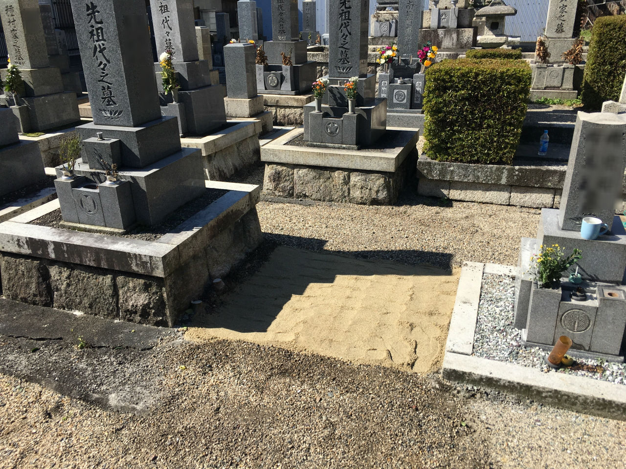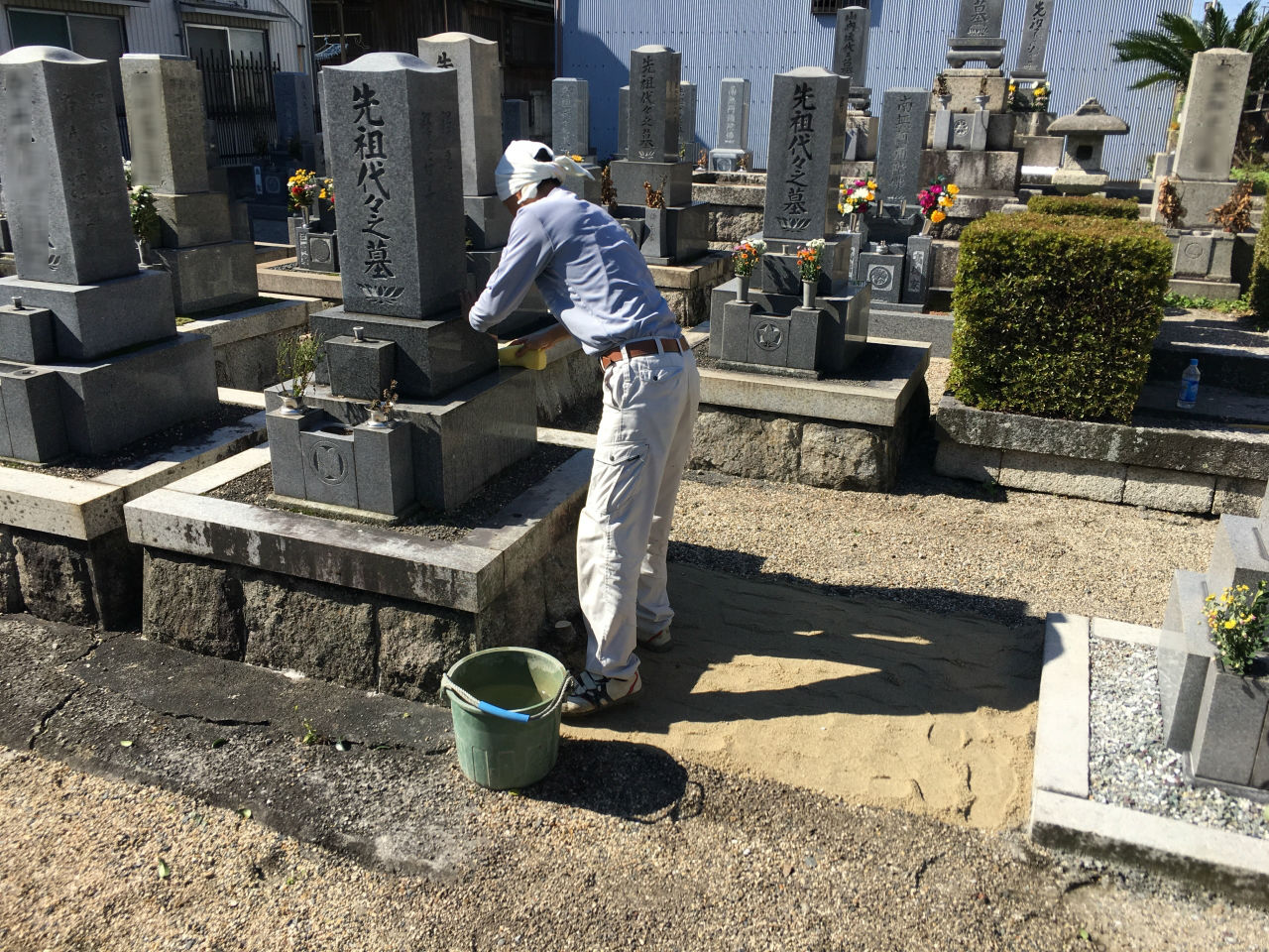 作業中に舞った砂埃などを清掃して周りのお墓にも迷惑をかけません。